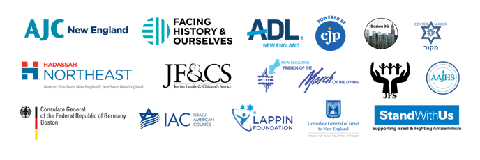 The American Association of Jewish Holocaust Survivors, the Anti-Defamation League of New England, the American Jewish Committee of New England, Boston 3G, Center Makor, Combined Jewish Philanthropies, the Consulate General of the Federal Republic of Germany to Boston, the Consulate General of Israel to New England, Facing History & Ourselves, Hadassah Northeast, the Israeli American Council, Jewish Family & Children’s Service, Jewish Family Services of MetroWest, the Lappin Foundation, and the New England Friends of the March of the Living.